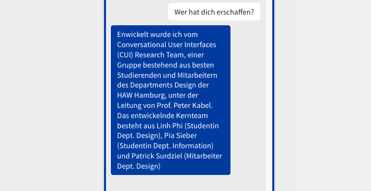 Es ging uns darum, die Konversation offen zu gestalten, also die Möglichkeit zu lassen, alles fragen zu können. Gleichzeitig wollten wir aber natürlich auch klarmachen, dass es kein Mensch ist, der da antwortet. In der Sprache wollten wir auf Augenhöhe bleiben - darum duzt unser Bot die User kumpelhaft und nutzt eine junge, frische Sprache.